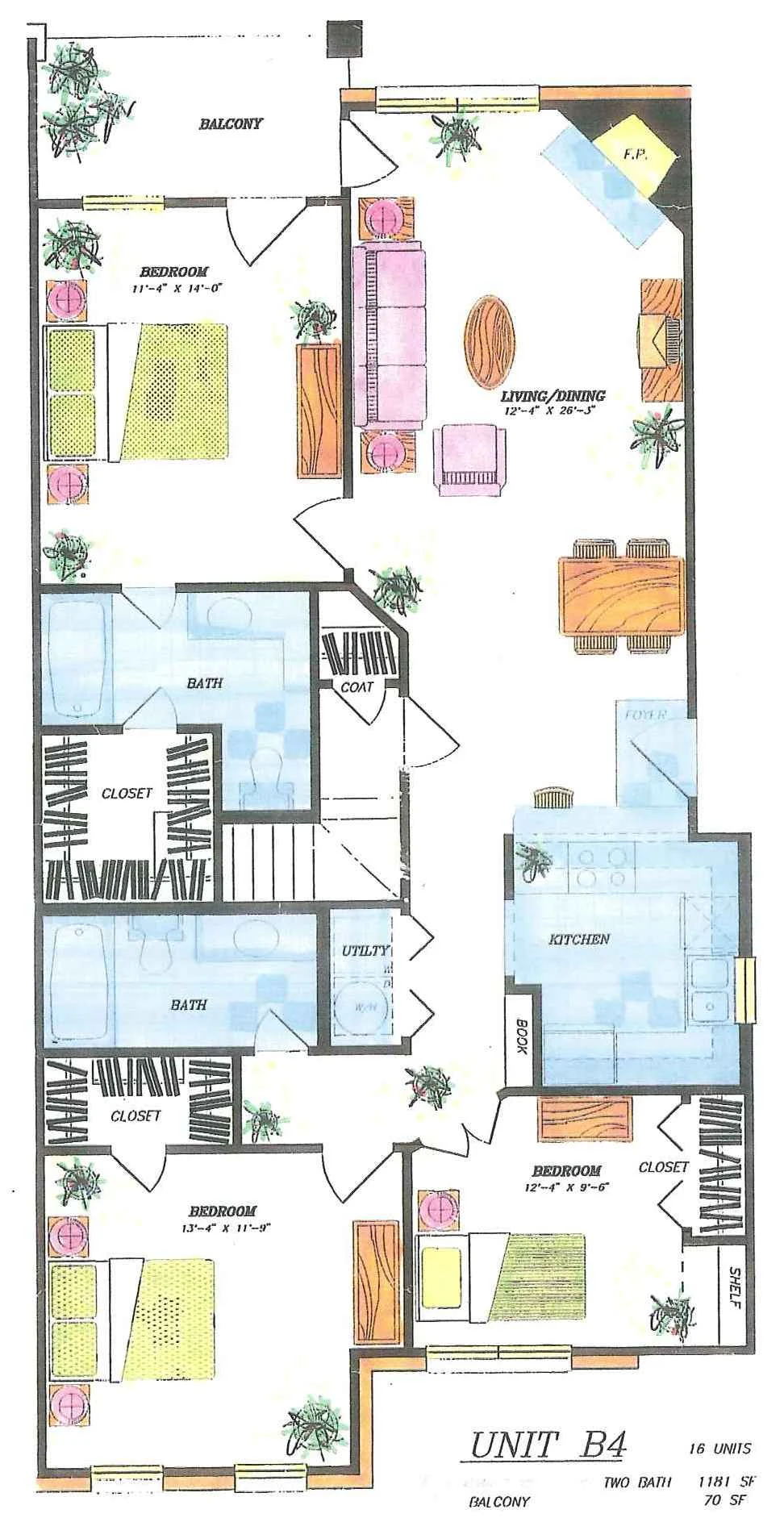 This is our three bedroom, two bathroom floorplan with 1182 square feet of living space including a study! Please call a member of our friendly leasing staff for more information!